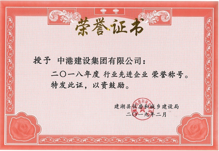 中港建設(shè)集團有限公司榮獲2018年度建湖住建系統(tǒng)“行業(yè)先進企業(yè)”