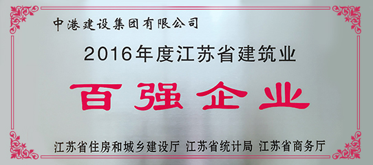 中港建設集團有限公司榮獲 “2016年度江蘇省建筑業(yè)百強企業(yè)”榮譽稱號