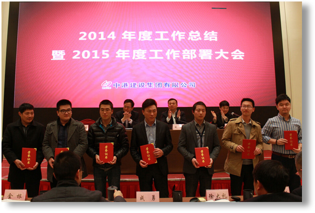 會議首先由集團(tuán)公司總裁秦高舉做題為《適應(yīng)新常態(tài) 實(shí)現(xiàn)新突破——強(qiáng)抓市場發(fā)展機(jī)遇 打造中港巨型航母(2014年度工作總結(jié)暨2015年度工作部署大會上的講話)》的報(bào)告,全面總結(jié)了集團(tuán)公司2014年度經(jīng)營結(jié)構(gòu)布局、重點(diǎn)工程完成情況、投資市場開拓進(jìn)展及存在的問題,并謀劃部署了集團(tuán)公司2015年度工作的主要目標(biāo)和任務(wù)。他指出,在全面推進(jìn)集團(tuán)經(jīng)營體制改革的基礎(chǔ)上,公司轉(zhuǎn)變觀念,攻堅(jiān)克難,全年實(shí)現(xiàn)經(jīng)營產(chǎn)值上百億元;實(shí)現(xiàn)利稅共計(jì)十億多元,較好的完成了既定指標(biāo)。但管理工作上依舊存在“六個不”問題,下半年要在推進(jìn)二步改革和市場擴(kuò)張基礎(chǔ)上,立足四個方向,抓住四個重點(diǎn),以增強(qiáng)盈利能力為中心,全力做好二步改革、市場擴(kuò)張、完善體系等方面工作,驅(qū)動集團(tuán)公司發(fā)展實(shí)現(xiàn)騰飛目標(biāo)??偛们馗吲e的講話對新形勢下集團(tuán)公司各部門、各公司進(jìn)一步統(tǒng)一思想、堅(jiān)定信心、同心協(xié)力、共謀大業(yè),實(shí)現(xiàn)跨越發(fā)展具有重要的指導(dǎo)意義。